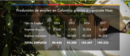 El crecimiento de las exportaciones de aguacate Hass en el país ha sido vertiginoso tanto en valor como en volumen. De exportar US$ 107.918 de aguacate Hass en 2010, el país pasó a vender al mundo en 2016 un total de US$ 35,04 millones. El crecimiento en valor de las exportaciones fue de 32.3 por ciento.