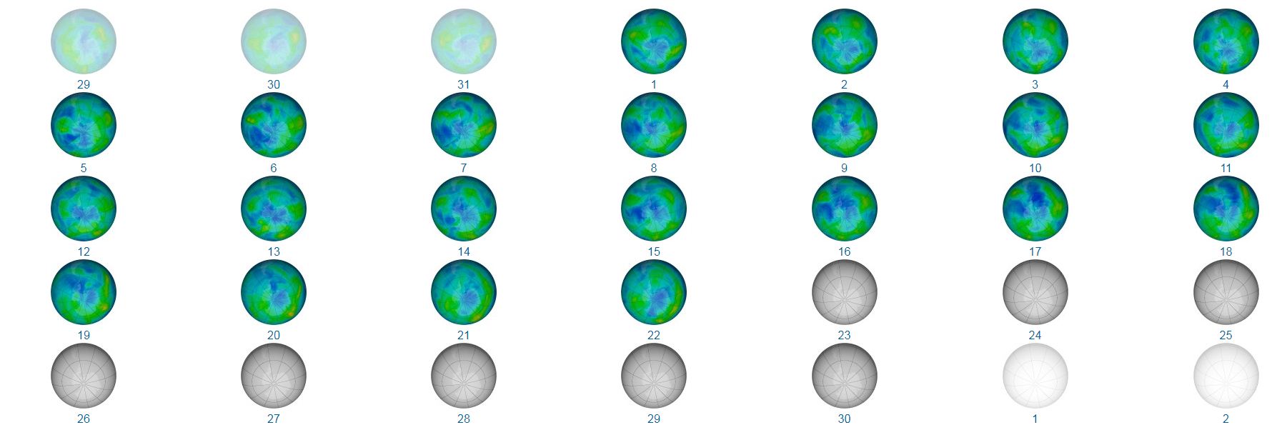 Así ha sido la evolución de la recuperación de la capa de ozono en el mes de abril. Dato: NASA.