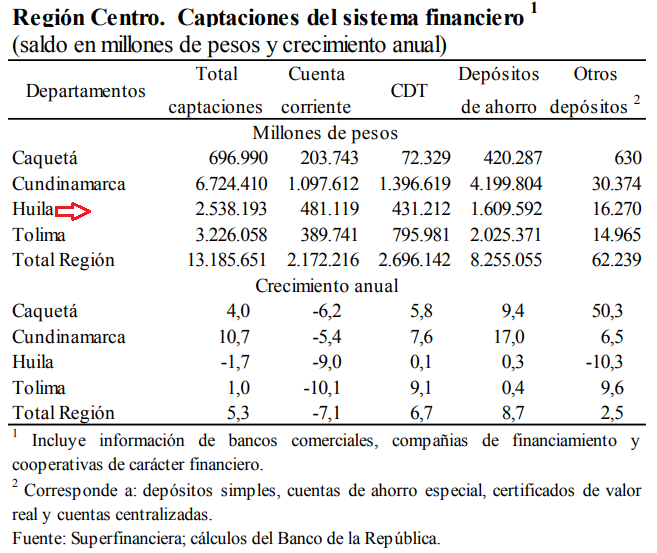 En Huila el valor total de captaciones alcanzó $2.538.193 millones