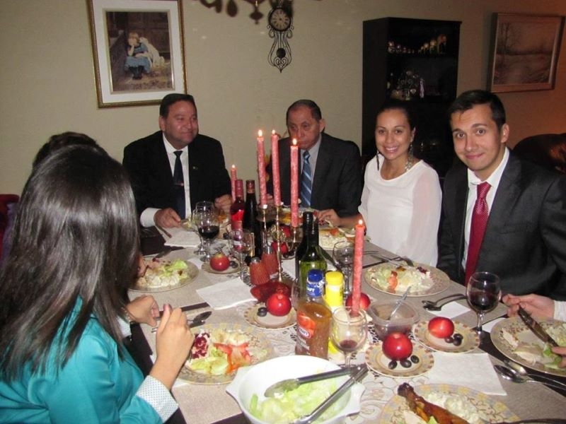 "La Politologa y Relacionista Internacional Victoria Eugenia Cantillo Guarin contraera matrimonio con su prometido el Poliglota y Doctor en Administracion y Finanzas Alexander Yuriev, nacido en Moscu en Rusia. Los Novios escogieron para su boda la iglesia de Sant Anna Dei Palafrenieri, ubicada en el costado norte de la plaza de San Pedro en el Vaticano. Los Padres de la Novia el Abogado Laboyano Juan Pablo Cantillo Gonzalez y la Gerontologa Martha Elena Guarin Ofreceran una especial y fina atencion para los 25 exclusivos invitados que viajaran para asistir al evento desde Bogota, Quebec y Moscu, en el prestigioso Restaurante "Matricianella" en Roma Italia. Aqui en cena familiar en el apartamento de los padres de la novia.