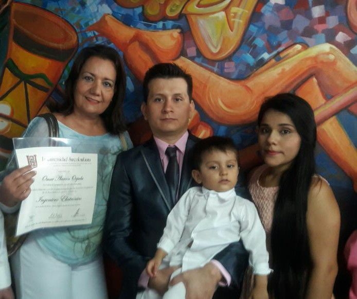 La Universidad Surcolombiana confirió el título como Ingeniero Electrónico a Omar Alarcón. Familiares y amigos lo felicitan por este logro profesional.