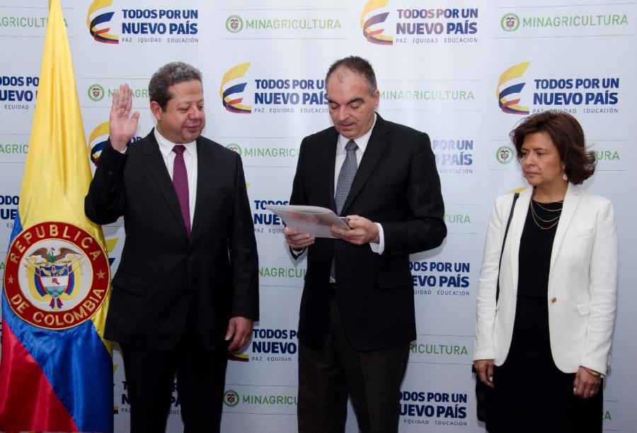 El huilense Luis Enrique Dussán López en su posesión como nuevo presidente del Banco Agrario, que tuvo lugar en Bogotá ante el ministro de Agricultura y Desarrollo Rural, Aurelio Iragorri Valencia.