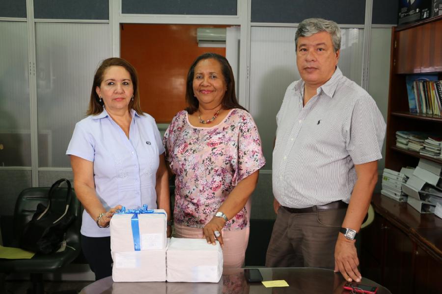 Aleen Camila Romero, campeona panamericana en subacuáticas, entregó al director administrativo de la Caja de Compensación las medallas obtenidas en el Campeonato Panamericano Juvenil CMAS Zona América, Nacional Interclubes por categorías y Nacional Universitario.