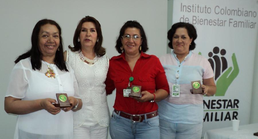 El Instituto Colombiano de Bienestar Familiar celebró el Día del Servidor Público entregando reconocimiento a los funcionarios con 10, 20 y 30 años de servicio. En la foto, la directora regional del ICBF, María Eugenia Alzate Jiménez, junto a Guadalupe Soriano, Elvia Fierro y Nancy Peñuela.