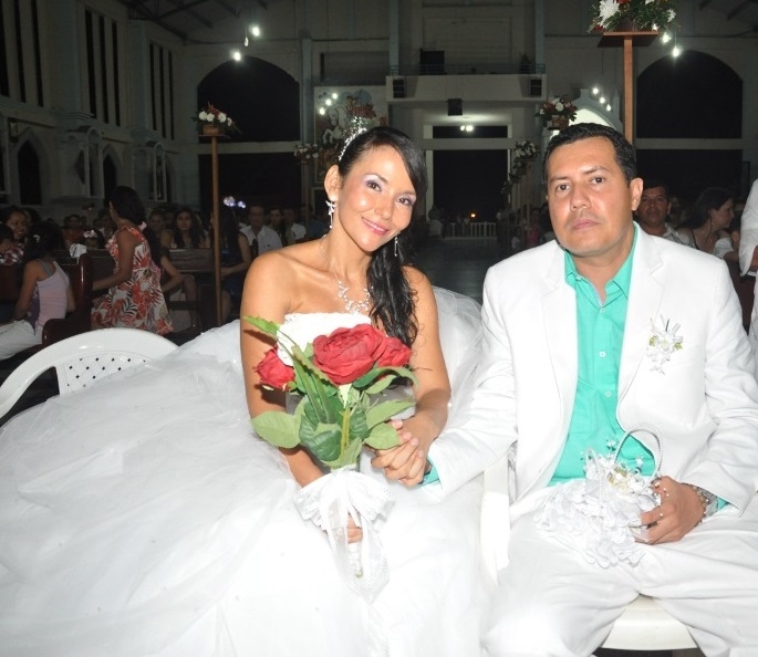 Ángela Rocío Díaz Salamanca y David Eduardo Becerra Camargo contrajeron nupcias bajo rito católico. Los recién casados partieron de luna de miel a Perú.