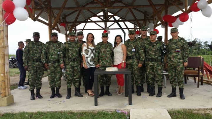 Con la tradicional torta, personal del Batallón Pigoanza de Garzón le celebró el cumpleaños al comandante de esa unidad militar, el coronel Juan Carlos Prieto.
