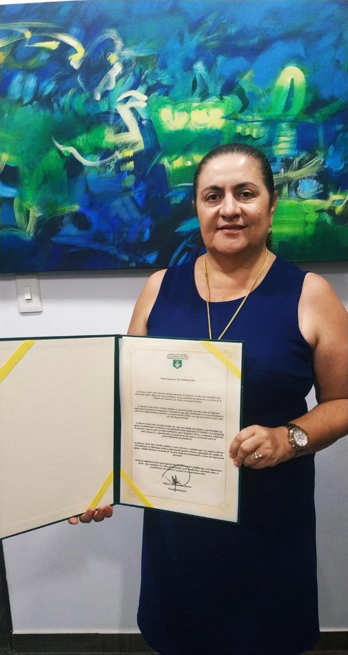 Clara Inés Triviño Medina, Directora Cámara de Comercio de Neiva Seccional – Pitalito, fue homenajeada por sus 20 años de trabajo incansable, compromiso, dedicación y excelentes resultados.