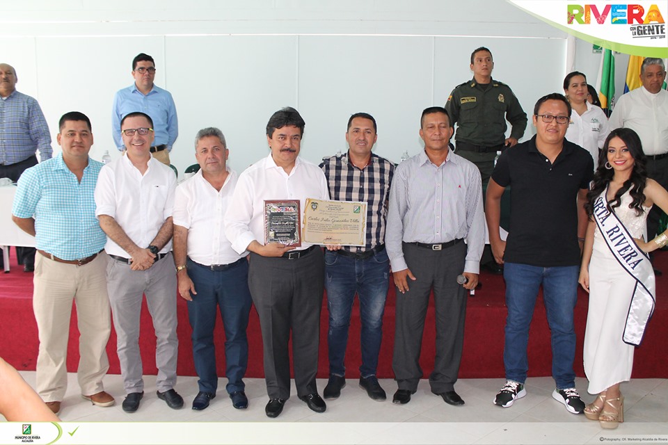 El alcalde de Rivera y el Concejo de la localidad, entregaron reconocimiento especial al gobernador del Huila, Carlos Julio González Villa por su gestión en obras para el municipio.