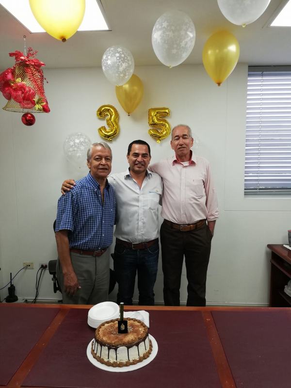 Vilvio Rojas Ciceri, cumplió 35 años de trabajo ininterrumpido en Electrohuila y ello fue motivo de celebración por parte de sus compañeros de labores.