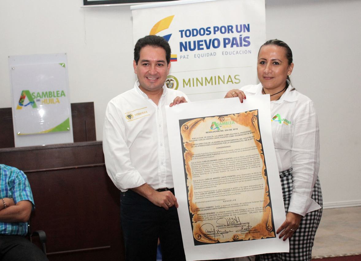 En la Corporación Universitaria del Huila, Corhuila, se realizó un conversatorio sobre el uso de energías alternativas; así mismo en la Asamblea Departamental se entregó un reconocimiento especial al Viceministro de Minas y Energía.