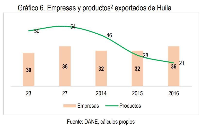 Es importante destacar, que entre 2012 y 2016 el número de empresas exportadoras del Huila aumentó 56,5% al pasar de 23 a 36 empresas.