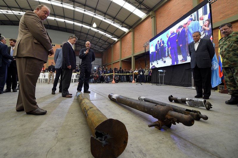 Por su parte el Ministerio de Defensa señaló que la Fuerza Pública ha incautado 351 caletas que pertenecían a las Farc. Las armas serán fundidas y con ellas se realizarán tres monumentos a la paz, uno de ellos estará ubicado en la sede de las Naciones Unidas.