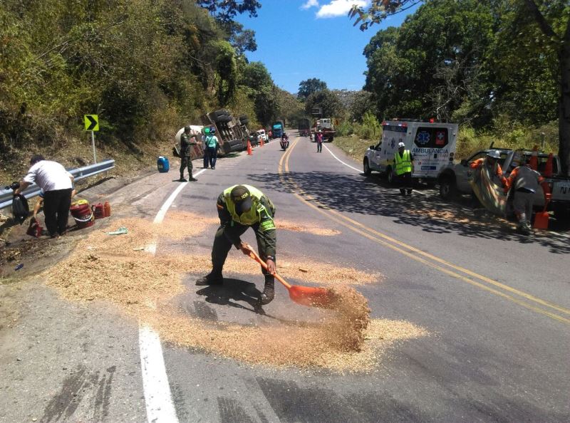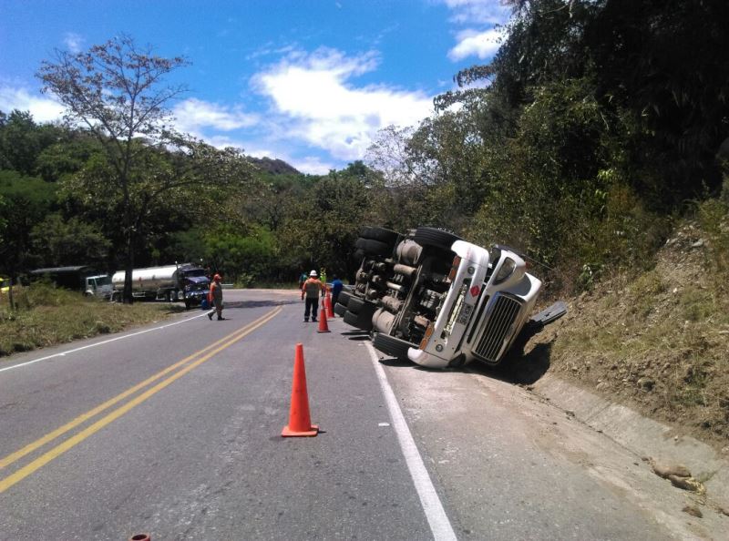 El vehículo tipo tracto camión de color blanco y de placa WRC 735 que transportaba ACPM y que se dirigía hacia Puerto Asís, Putumayo, se volcó a un lado de la vía por razones que se desconocen.