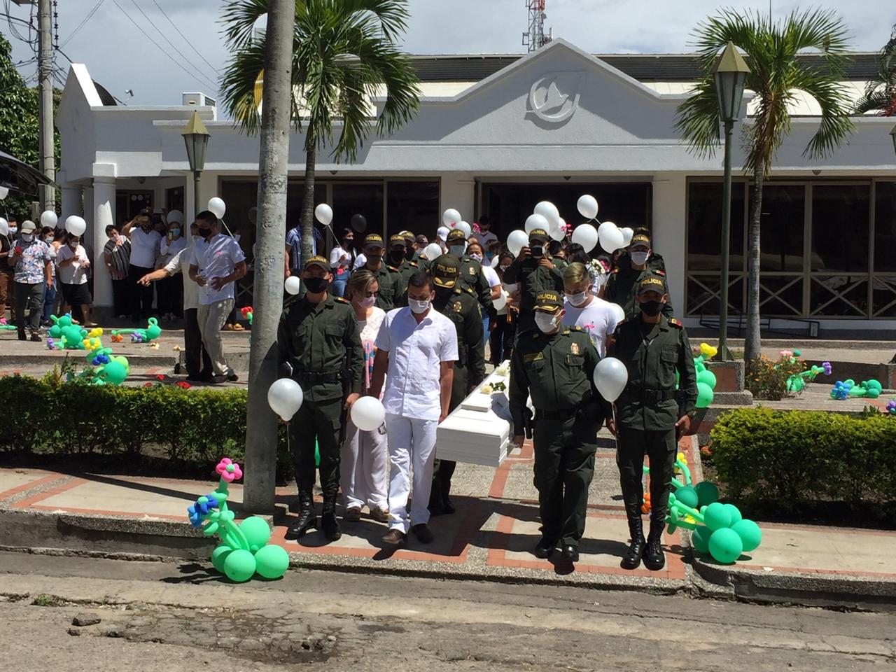 Ayer en el entierro, con bombas blancas y oraciones una gran cantidad de habitantes de este municipio y sus familiares acompañaron el traslado del cadáver de Salome, al cementerio de la localidad, donde las autoridades solamente permitieron el ingreso de veinte personas todas ellas de la familia de la víctima para darle el último adiós a Salomé.