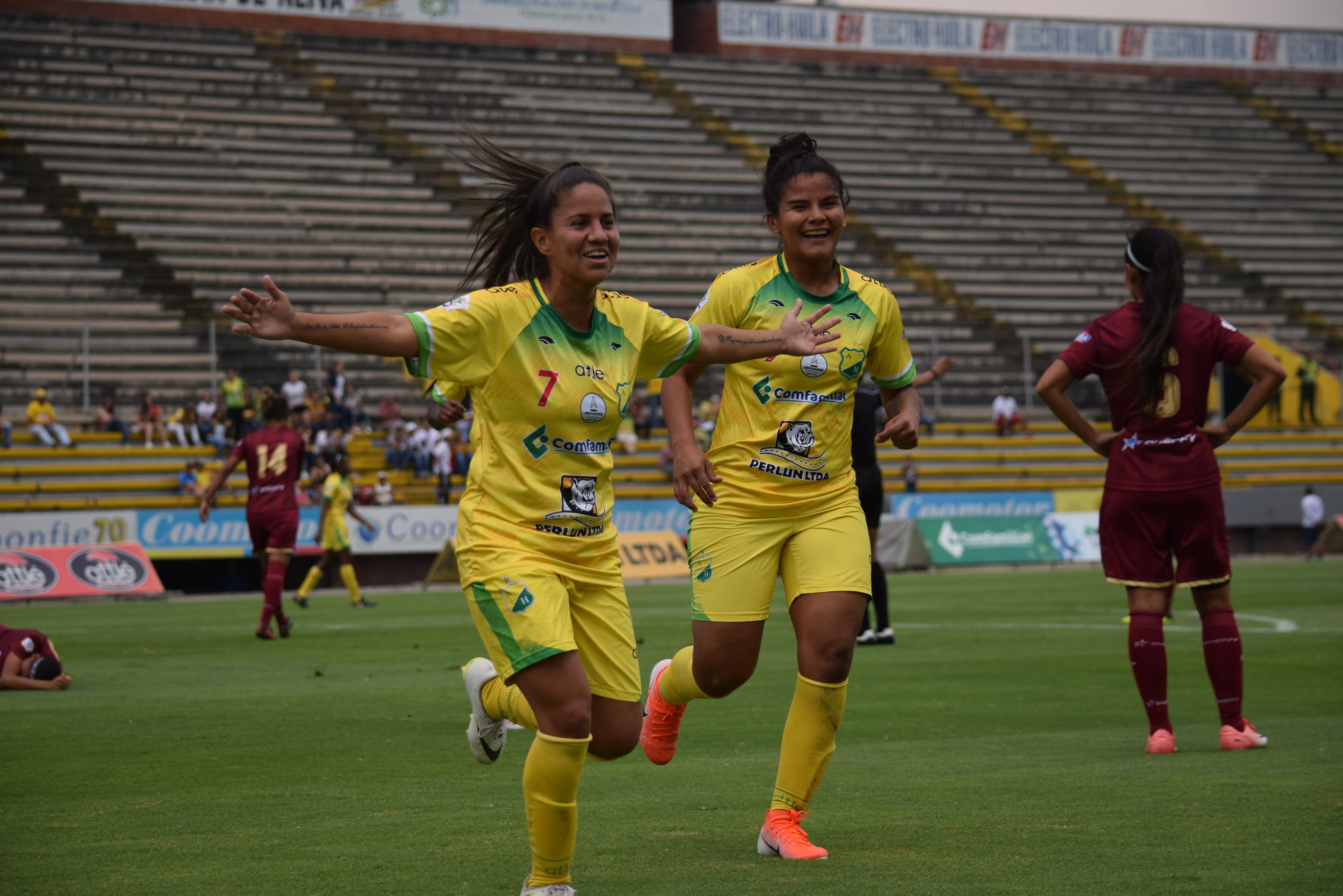 La delantera Ivonne Chacón marcó su primer doblete con el Atlético Huila Femenino y fue una de las destacadas en la victoria ante el Tolima, al final dijo, “creo que nos da tranquilidad, pero no al cien por ciento, creo que debemos seguir trabajando, porque el partido que se nos viene es el más importante, seguir haciendo lo que estamos haciendo y estamos agradecidas con Dios. Por los goles estoy súper feliz completamente y creo que se escucharon mis oraciones”.