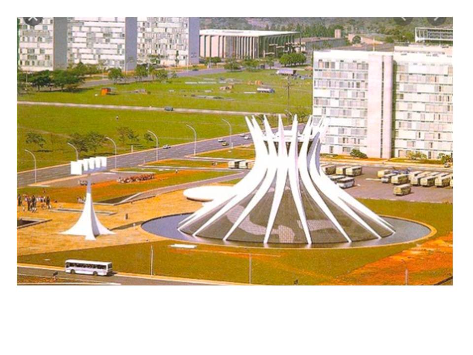 La Catedral de Brasilia tiene 40 ml de altura y capacidad para 4 mil personas. La base del edificio es circular con 60 ml de diámetro. Su techo es de cristal mate, La construcción se inició en 1959 y se terminó en 1970