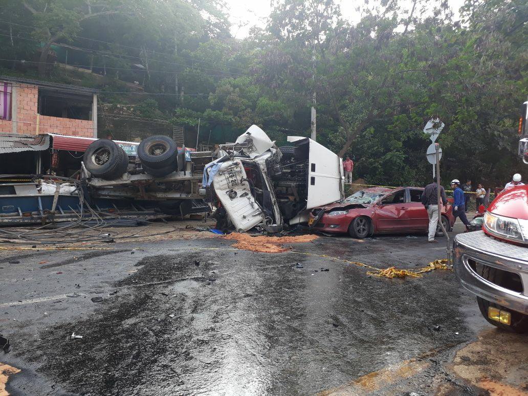 Señaló que el tracto camión se volteó e impactó “a unas casetas y unas motos que se encontraban estacionadas allí”.