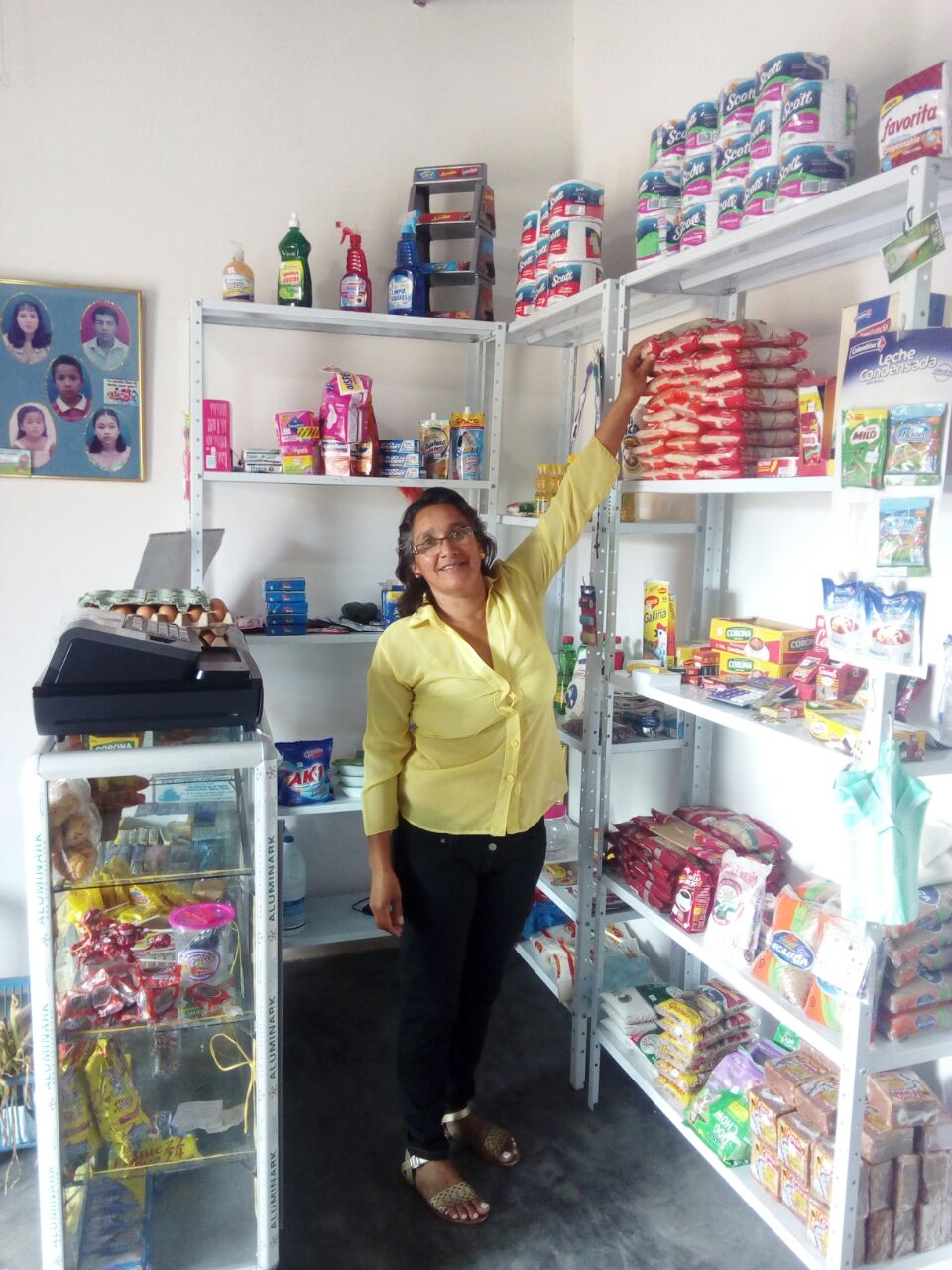 Luz Marina Salcedo Cárdenas, habita en el Municipio de Garzón y hace parte de la Población Víctima en el Huila. Dice que sus ingresos mejoraron gracias a la unidad productiva que le entregó la Gobernación del Huila. Su tienda hoy le alcanza para vivir más tranquila.